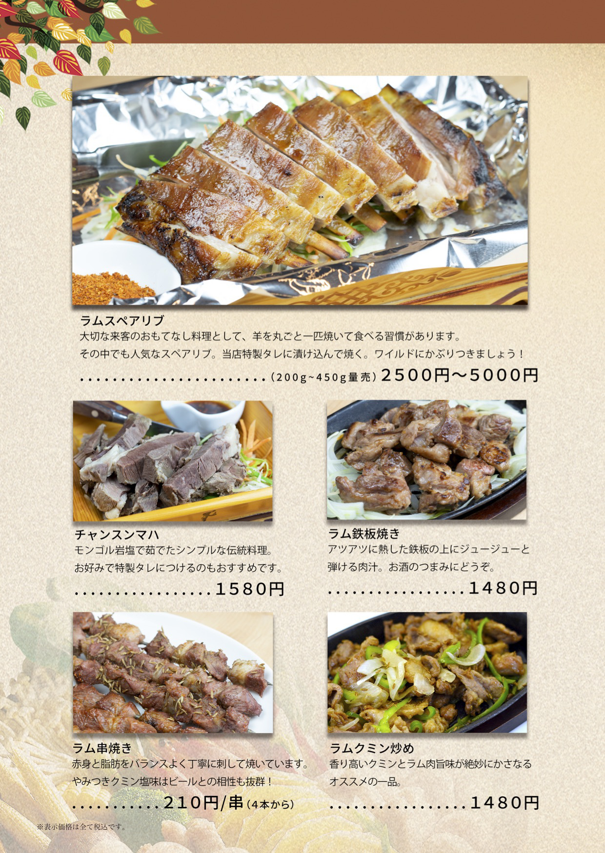 新鮮な野菜と注文を受けてから麺を手打ちするモンゴル蒸し麺はモンゴルのお相撲さんにも大人気。他にもラムの骨で煮込んだスープ、スペアリブなどに使う当店特製のタレなど安心で美味しい人気メニューがたくさんあります。