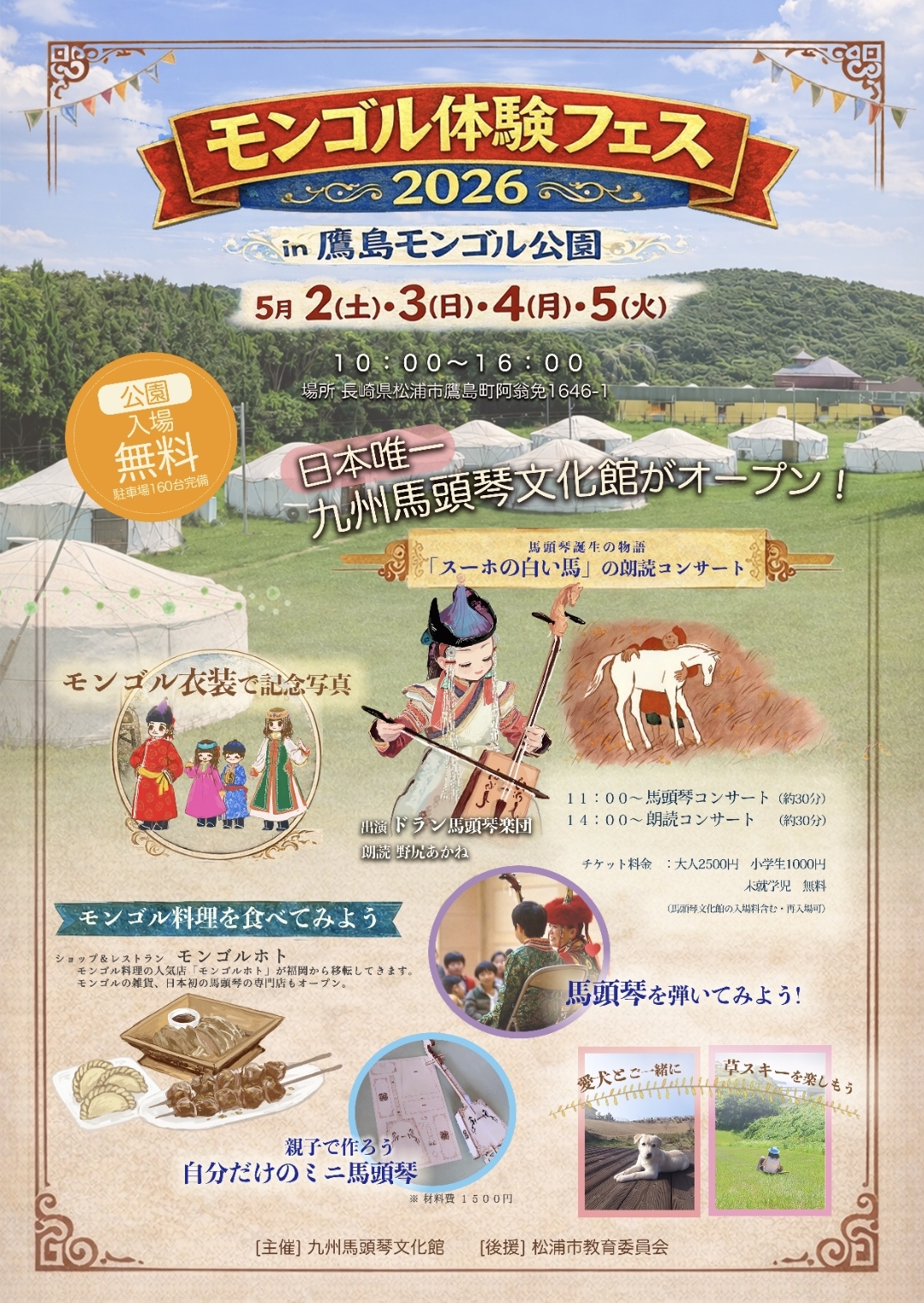 そしてGWの5月2日(土)〜5日(火)には特別イベント「モンゴル体験フェス2026 in 鷹島モンゴル公園」を開催。これを皮切りに、文化・食・体験が一体となった新しい事業がスタートいたします。